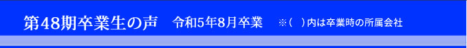 学院のスタッフの皆様、一年間お世話になり本当にありがとうございました。あっという間でした。箱根旅行、新年会など行事も楽しい思い出ですが、他社の方々と同じ目的で勉強し交流することができたことが自分自身にとってとても励みになりました。振り返って良い想い出となる様、これからも頑張っていきたいです。 赤木佳子(第一生命) |
